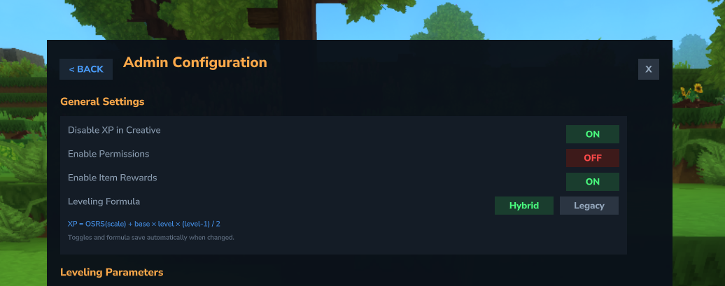 • Disable XP in Creative - Toggle whether creative mode players gain XP